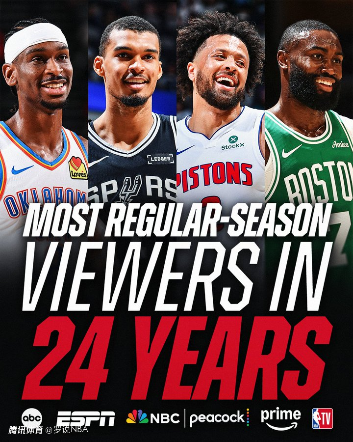 本赛季是亚马逊Prime视频首次纳入NBA转播版权体系,同时也是NBC及孔雀流媒体时隔多年重新回归NBA转播阵营。2024年,NBA签下一份为期11年、总价值超760亿美元的全新媒体版权合约,敲定上述四大平台联合转播赛事,新合约于本赛季正式生效。