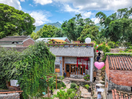 在这里,美丽风景催生“美丽经济”。铁岗社区创新“政府引导+央企助力+民企运营+群众参与”模式,在高要区政府引导支持下,中铁十九局集团助力,玉瑶山庄公司建设运营,农户出租宅基地,共同打造全省首家乡村屋顶咖啡等众创经营性项目,并于2024年6月建成开放。坐在由旧升旗台改造的咖啡座上,远眺连片稻田,近观古屋叠翠,咖啡香与稻香交融,勾勒出现代乡村休闲图景。